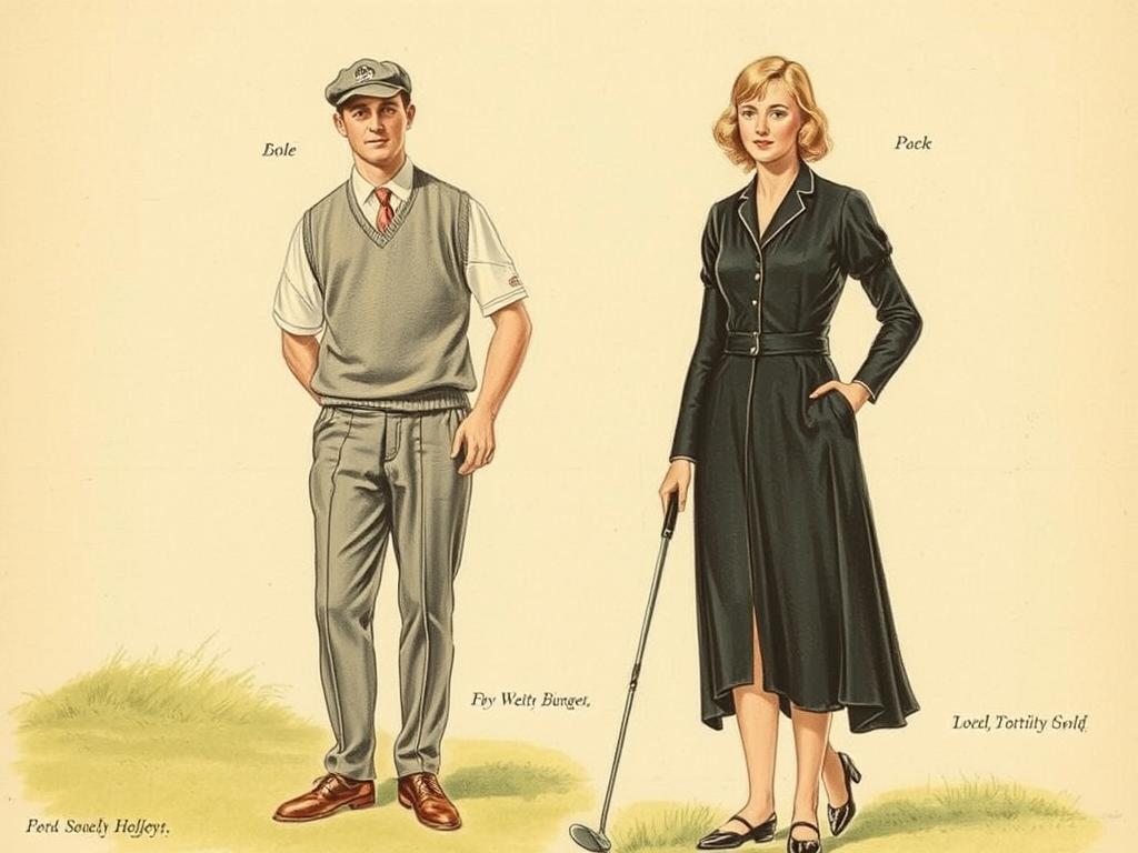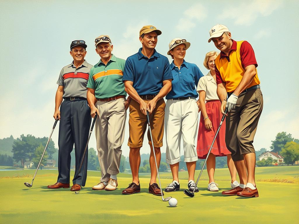 A Realistic Vintage Drawing Showing A Group Of Golfers From The