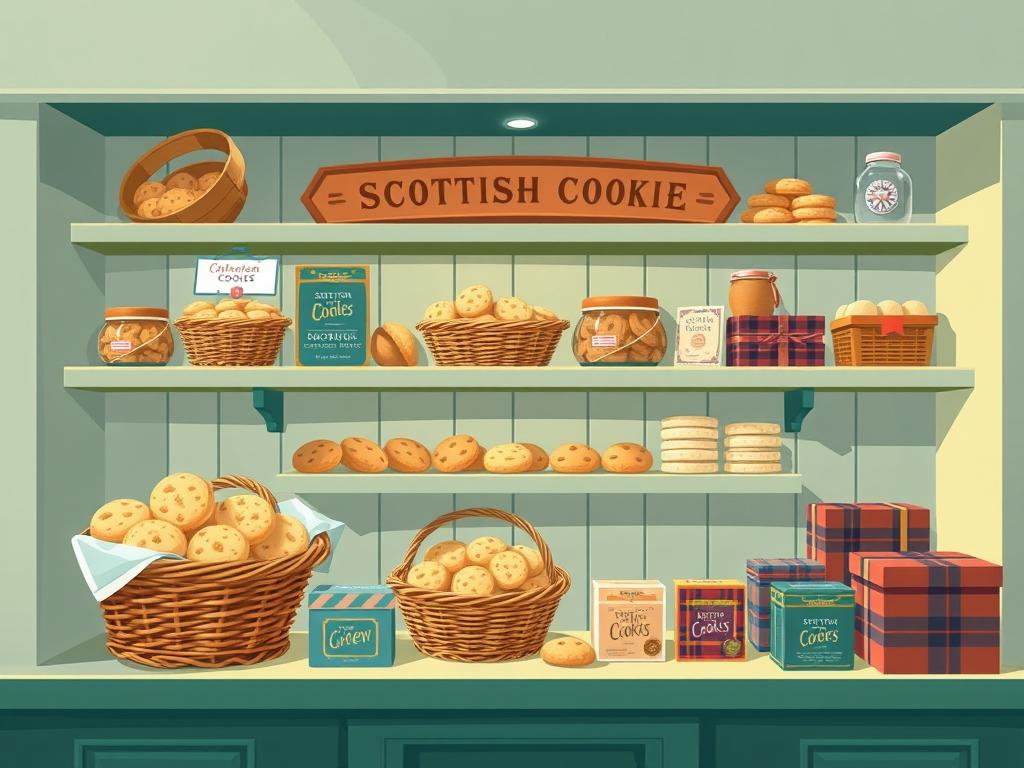 Ilustration Vintage Showcase Of A Scottish Cookie Store With