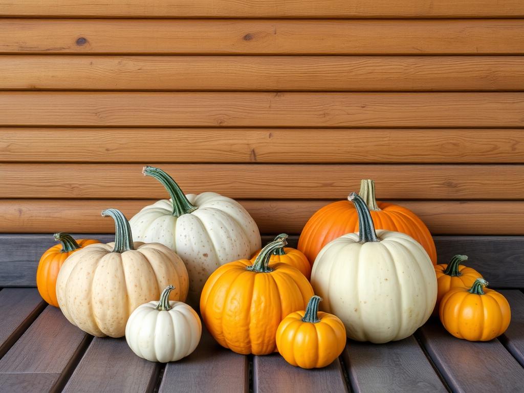 pumpkins on a wooden floor and in front of a wooden wall Version 1